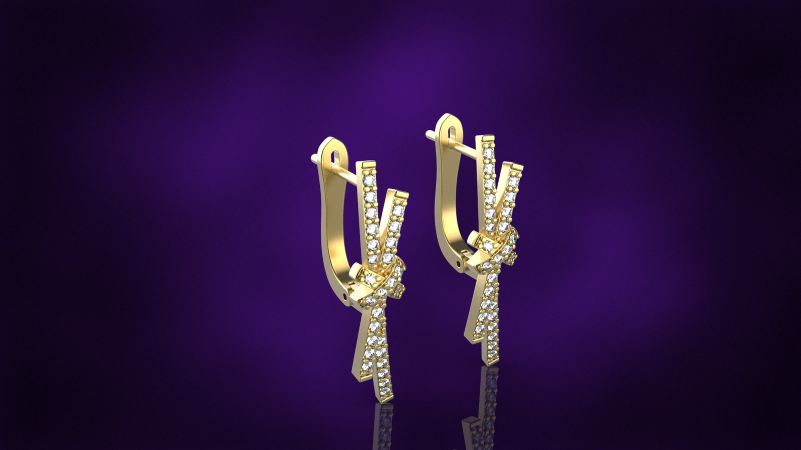 Золотисті сережки з перехрестям, інкрустованим прозорими камінцями. Легка, елегантна модель, яка пасує до повсякденних і святкових образів. Зручна застібка забезпечує комфортне носіння.
